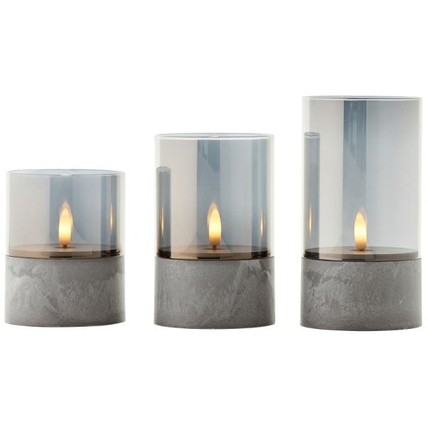 Bougie LED-Kerzen im 3er-Pack sind eine stilvolle Beleuchtungslösung, die sowohl drinnen als auch draußen eine warme und gemütliche Atmosphäre schafft. Das Set enthält Lampen in den Höhen 10 cm, 12,5 cm und 15 cm, alle mit 8 cm Durchmesser – perfekt für Tisch, Regal oder Fensterbank. Die Lampen haben einen Docht, der natürliches flackerndes Licht mit einer warmen Farbtemperatur von 2500 K imitiert. Die Schirme bestehen aus modernem Rauchglas und der Sockel aus reißfestem grauem Kunststoff. Mit der Schutzart IP44 eignen sie sich im Badezimmer ebenso wie auf Balkonen oder Terrassen. Die integrierte Timerfunktion (6 h an, 18 h aus) erleichtert die Steuerung der Beleuchtung und spart Energie. Jede Lampe wird mit 2 x AA-Batterien (nicht im Lieferumfang enthalten) betrieben, was eine flexible Platzierung ohne Steckdose ermöglicht. Ein elegantes Set, das jeder Umgebung stimmungsvolles Licht verleiht.
