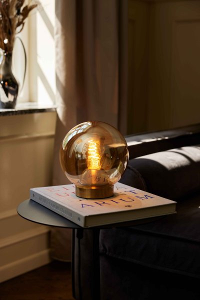 Die schlichte Form der Bubbles-Lampe verleiht ihr ein wunderschönes Design. Das bernsteinfarbene Glas in Kombination mit den antiken Messingdetails verleihtMehr lesenDie schlichte Form der Bubbles-Lampe verleiht ihr ein wunderschönes Design. Das bernsteinfarbene Glas in Kombination mit den antiken Messingdetails verleiht Eleganz und sorgt im eingeschalteten Zustand für eine schöne Lichtverteilung im Raum. Empfehlenswert ist die Platzierung auf dem Beistelltisch, der Schublade oder im Fenster. Lieferung mit 1,8 m langem Textilkabel, Netzschalter und Stecker. Lichtquelle nicht enthalten.
