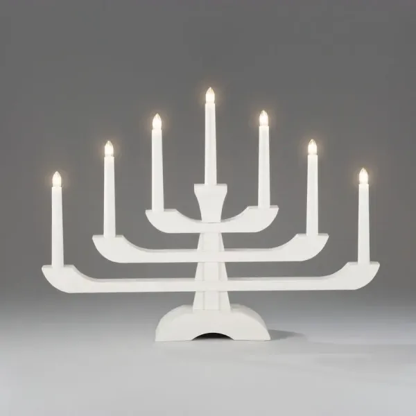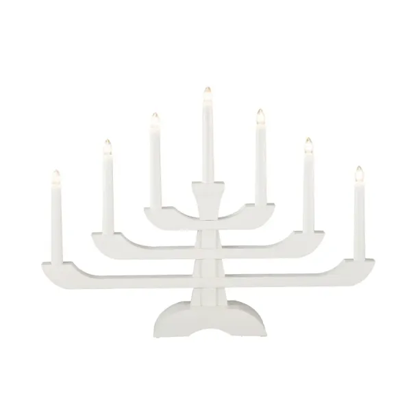 Verleihen Sie Weihnachten mit diesem dekorativen Adventskerzenhalter aus weiß lackiertem Holz eine moderne Note. Mit seinen drei stilvollen Ebenen und sieben warmweißen Lichtern verbindet es klassischen Charme mit modernem Design. Perfekt als Fensterdekoration oder Tafelaufsatz. der Tisch – Ein stimmungsvoller und eleganter Kerzenständer, der jeden Winterabend erleuchtet. Wird mit einem 1,7 m langen weißen Kabel, Netzschalter und Stecker geliefert. Inklusive 7 auswechselbaren E10-Glühbirnen (34V).