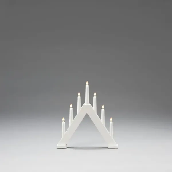 Schaffen Sie eine stilvolle und moderne Weihnachtsatmosphäre mit diesem eleganten Adventsleuchter aus mattweiß lackiertem Holz. Die klassische Pyramidenform wird mit einem minimalistischen Design kombiniert, was es zu einem perfekten Einrichtungsdetail sowohl in traditionellen als auch in modernen Häusern macht. Die sieben Kerzen verbreiten einen warmen und stimmungsvollen Schein – ein zeitloser Favorit, der die Adventszeit erhellt! Lieferung mit 1,7 m weißem Kabel, Netzschalter und Stecker. Inklusive 7 auswechselbaren E10-Glühbirnen (34V).