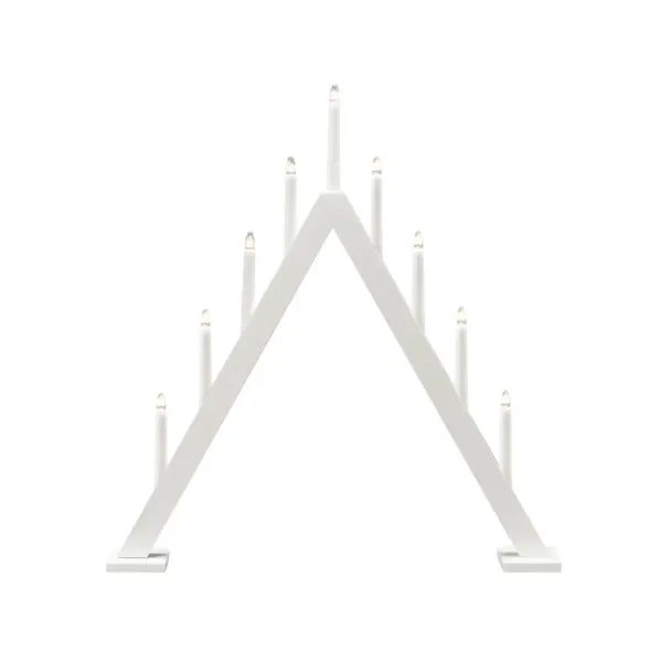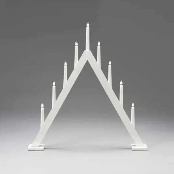 Schaffen Sie eine stilvolle und moderne Weihnachtsatmosphäre mit diesem eleganten Adventsleuchter aus weiß lackiertem Holz. Die klassische Pyramidenform wird mit einem minimalistischen Design kombiniert, was es zu einem perfekten Einrichtungsdetail sowohl in traditionellen als auch in modernen Häusern macht. Die neun Kerzen verbreiten einen warmen und stimmungsvollen Schein – ein zeitloser Favorit, der die Adventszeit erhellt! Lieferung mit 1,7 m weißem Kabel, Netzschalter und Stecker. Inklusive 9 auswechselbaren E10-Glühbirnen (23V).