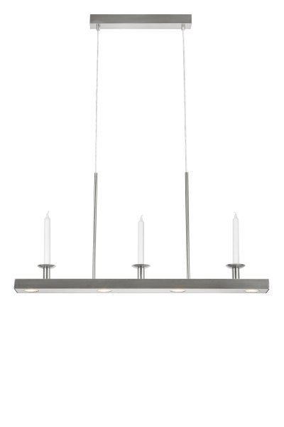 Stilvolle Metall-Deckenleuchte in gebürsteter Stahloptik vereint modernes Design mit klassischem Charme. Die Leuchte bietet Platz für drei Kronleuchter (nicht imMehr lesenStilvolle Metall-Deckenleuchte in gebürsteter Stahloptik vereint modernes Design mit klassischem Charme. Die Leuchte bietet Platz für drei Kronleuchter (nicht im Lieferumfang enthalten) und verfügt über integrierte LED-Beleuchtung, die ein angenehmes, nach unten gerichtetes Licht spendet. Ideal über dem Esstisch, um eine stimmungsvolle Atmosphäre zu schaffen. Die Leuchte ist mit einem herkömmlichen Wandschalter in drei Stufen dimmbar, sodass Sie die Helligkeit ganz einfach an Ihre Bedürfnisse anpassen können – von vollem Licht bis hin zu sanfter Beleuchtung für gemütliche Abendessen. Nicht kompatibel mit externen Dimmern.