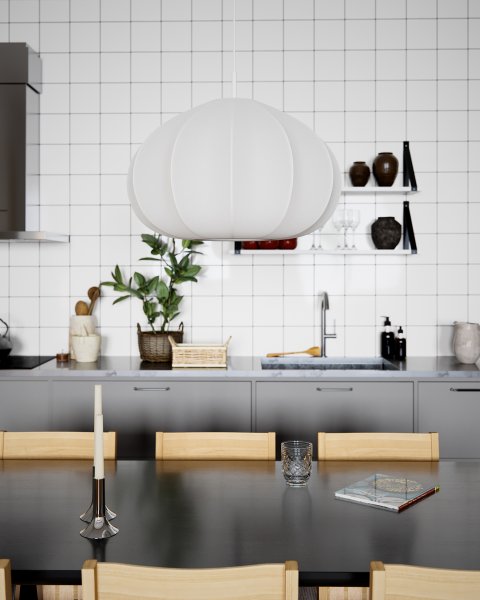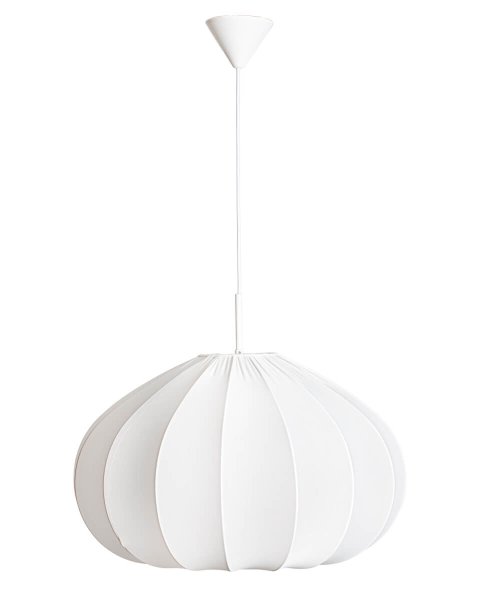 Entdecken Sie die Deckenleuchte Ebba, erhältlich in zwei Farben. Größen: wahlweise mit 50 cm oder 60 cm Durchmesser. Ebba besteht aus dünnem, weißem Stoff, der eine feminine Note verleiht und durch das zarte Material ein sanftes Licht verbreitet. Es handelt sich um eine leicht zu platzierende Lampe, die eine große E27-Fassung benötigt. Die Aufhängung besteht aus mattweißem Metall und wird durch ein weißes Textilkabel ergänzt, was zur eleganten Optik der Leuchte beiträgt. Perfekt, um sowohl in modernen als auch in klassischen Wohnumgebungen eine sanfte und gemütliche Atmosphäre zu schaffen. Entdecken Sie die Möglichkeiten der Deckenleuchte Ebba und lassen Sie ihre schlichte Schönheit und ihr funktionales Design zu einer Zierde in Ihrem Zimmer werden. Lichtquelle nicht enthalten.