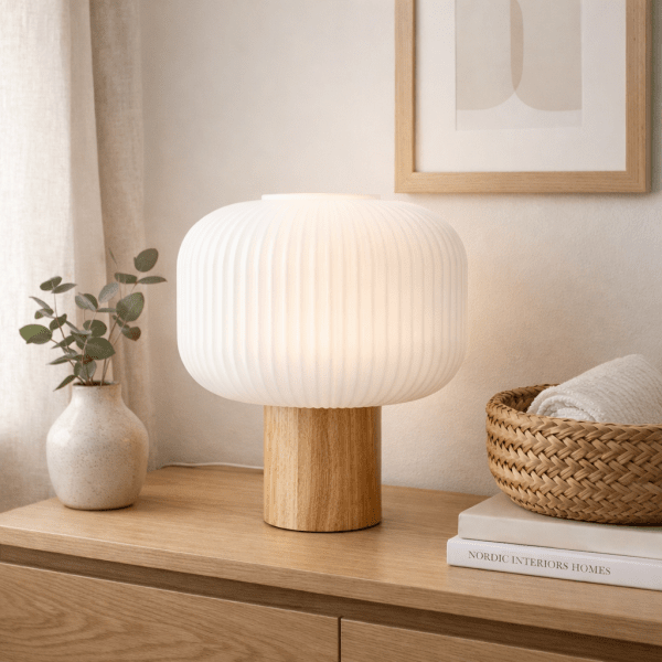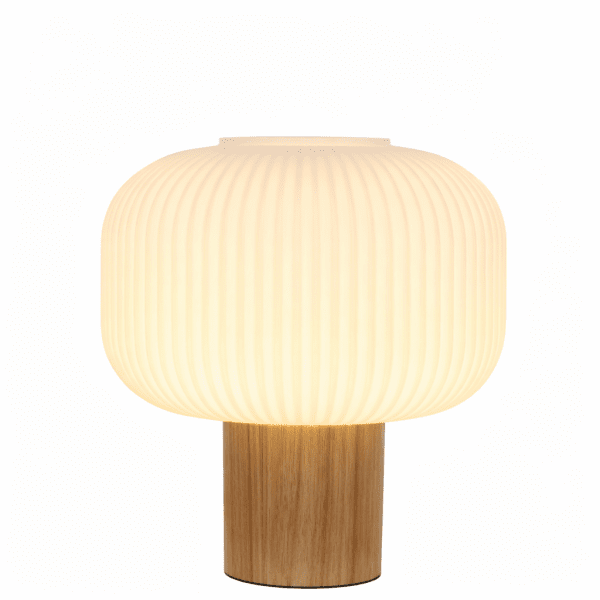 Die stilvolle Tischleuchte Ekerum vereint natürliche Materialien mit weichen Formen. Der Holzfuß verleiht ihr eine warme und solide Ausstrahlung, währendMehr lesenDie stilvolle Tischleuchte Ekerum vereint natürliche Materialien mit weichen Formen. Der Holzfuß verleiht ihr eine warme und solide Ausstrahlung, während der geriffelte Glasschirm in Weiß für ein angenehmes und sanftes Licht sorgt. Dank ihres harmonischen Designs fügt sich die Leuchte in viele verschiedene Umgebungen ein – von modern bis klassisch. Sie eignet sich perfekt als Stimmungslicht auf einem Beistelltisch oder am Fenster. Die Leuchte wird mit einem 1,8 m langen, transparenten Kabel, einem Netzschalter und einem Netzstecker geliefert. Leuchtmittel ist nicht enthalten.