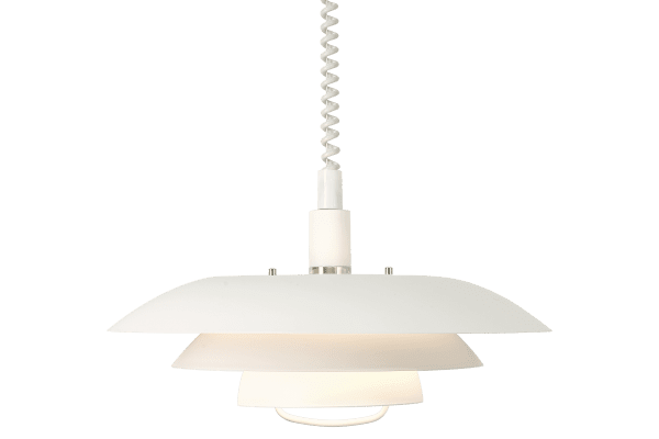 Die klassische Epsilon-Deckenleuchte mit Liftfunktion lässt sich durch Herunterziehen oder Hochdrücken des Griffs einfach senken oder heben. Die Leuchte verfügtMehr lesenDie klassische Epsilon-Deckenleuchte mit Liftfunktion lässt sich durch Herunterziehen oder Hochdrücken des Griffs einfach senken oder heben. Die Leuchte verfügt über drei zusammengesetzte Schirme aus weiß lackiertem Metall, die das Licht angenehm verteilen und Blendung verhindern. Epsilon wird mit zwei dekorativen Ringen und Knöpfen geliefert. Wählen Sie zwischen Chrom oder mattiertem Messing, je nachdem, was am besten zu Ihrem Zuhause passt. Die Leuchte ist höhenverstellbar, mit einer minimalen Gesamthöhe von 65 cm und einer maximalen Höhe von 150 cm. Die Epsilon-Deckenleuchte kann auch mit anderen Leuchten der Epsilon-Familie kombiniert werden. Lichtquelle nicht enthalten.