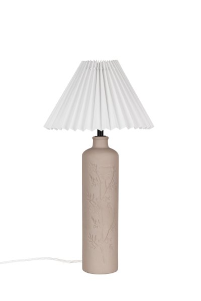 Die Lampenserie Flora ist eine einzigartige Design-Zusammenarbeit zwischen der Schöpferin Johanna Berglund und Globen Lighting. Johanna wollte eine Lampe entwerfen,Mehr lesenDie Lampenserie Flora ist eine einzigartige Design-Zusammenarbeit zwischen der Schöpferin Johanna Berglund und Globen Lighting. Johanna wollte eine Lampe entwerfen, die aus Materialien, Farben und Formen besteht, die sich in der Natur widerspiegeln und sowohl in ländliche als auch in moderne Umgebungen passen. Der Lampenfuß besteht aus Keramik in einem warmen Grau. Farbe und verfügt über einen integrierten plissierten cremefarbenen Textilschirm. Als schönes Detail ist auf der einen Seite des Lampensockels ein Muster der Schlehenblüte eingepresst, das einen echten Hauch von Handwerkskunst vermittelt. Die Leuchte verfügt über ein 200 cm langes weißes gedrehtes Textilkabel mit Schalter und Stecker.