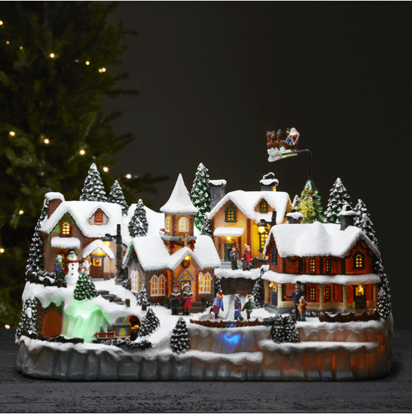 Große und detailreiche Weihnachtsdekoration in Form eines Dorfes mit drei verschiedenen rotierenden Teilen: Eisenbahn, Schlittschuhlaufende Kinder, Rentier mit Schlitten undMehr lesenGroße und detailreiche Weihnachtsdekoration in Form eines Dorfes mit drei verschiedenen rotierenden Teilen: Eisenbahn, Schlittschuhlaufende Kinder, Rentier mit Schlitten und Weihnachtsmann. Largeville bietet außerdem schöne Musik mit 8 verschiedenen Weihnachtsliedern. Platzieren Sie es auf einem Sideboard oder einem Tisch und schaffen Sie eine schöne Weihnachtsatmosphäre. Wird mit Kabel und Stecker geliefert und kann auch mit Batterien betrieben werden (3 AA-Batterien nicht im Lieferumfang enthalten). Brenndauer ca. 48 Stunden bei Batteriebetrieb.