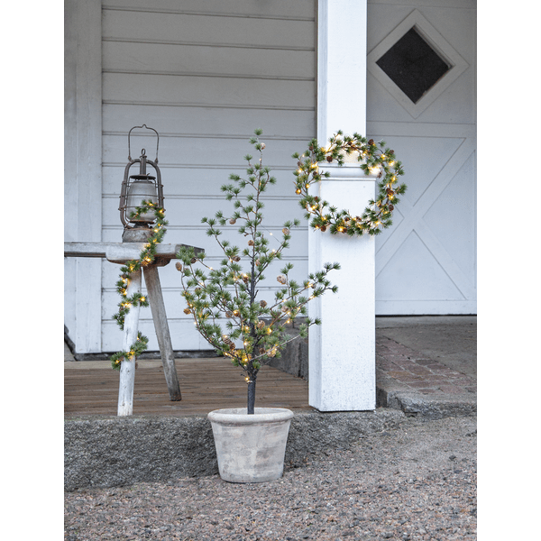 Die Larix-Tanne hat dekorative Zweige mit Nadeln, die Lärchennadeln ähneln. Diese bestehen aus PE-Material, einer umweltfreundlichen Wahl. Mit 40 warmweißen Lichtpunkten leuchtet sie wunderschön und eignet sich hervorragend als einladender Treppenaufgangsbaum im Freien oder im Haus, beispielsweise im Flur oder Kinderzimmer. Sie wird mit 3 AA-Batterien (nicht im Lieferumfang enthalten) betrieben und verfügt über eine Timerfunktion (6 Stunden an, 18 Stunden aus, Wiederholung). Im Timermodus leuchtet die Tanne etwa 20 Tage lang. Das Kabel zum Batteriefach ist 30 cm lang.