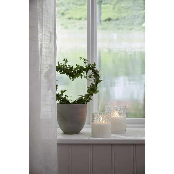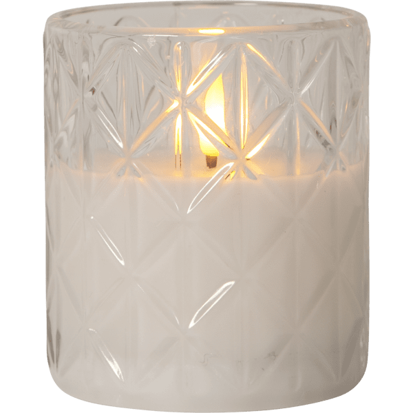 Flamme Rhombus Glaslaterne mit Batterielicht aus klarem Glas mit Rautenmuster. Diese batteriebetriebene Kerze ist sowohl allein als auch in derMehr lesenFlamme Rhombus Glaslaterne mit Batterielicht aus klarem Glas mit Rautenmuster. Diese batteriebetriebene Kerze ist sowohl allein als auch in der Gruppe mit anderen Kerzen der Flamme-Serie eine schöne Dekoration. Es verfügt über eine Timerfunktion und wenn der Schalter eingeschaltet ist, leuchtet das Licht im Timermodus 6 Stunden lang, 18 Stunden lang aus (in Wiederholung), mit einer schönen realistischen Flamme in warmweißem Licht. Die Stromversorgung erfolgt über 2 AAA-Batterien, diese sind nicht im Lieferumfang enthalten. Brenndauer ca. 200 Stunden.