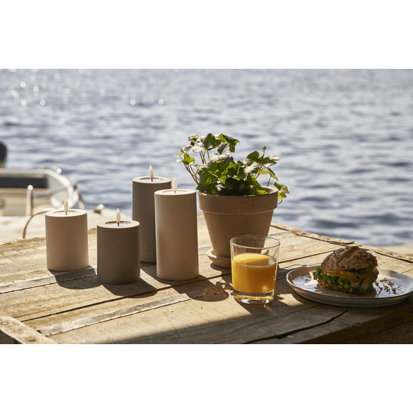Die batteriebetriebene Kerze Flame Soft besticht durch ihre naturgetreue Flamme und eine Brenndauer von ca. 1000 Stunden. Die Oberfläche der Kunststoffkerze fühlt sich samtig an und bildet unter der Flamme einen glänzenden Schimmer, der an flüssiges Wachs erinnert und die Kerze noch lebensechter wirken lässt. Sie ist eine wunderschöne Dekoration, sowohl einzeln als auch in Kombination mit anderen Kerzen der Flamme-Serie, und eignet sich für den Innen- und Außenbereich. Die Kerze verfügt über eine Timerfunktion (6 Stunden an, 18 Stunden aus, Wiederholung). Im Timer-Modus leuchtet sie mit einer wunderschönen, realistischen Flamme in warmweißem Licht. Sie wird mit 2 AA-Batterien betrieben (nicht im Lieferumfang enthalten).