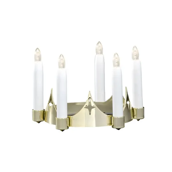 Traditioneller Lucia-Kronleuchter aus goldfarbenem Kunststoff mit 5 weißen LED-Leuchten, die ein warmes und stimmungsvolles Licht verbreiten. Perfekt für Lucia-Feiern zuMehr lesenTraditioneller Lucia-Kronleuchter aus goldfarbenem Kunststoff mit 5 weißen LED-Leuchten, die ein warmes und stimmungsvolles Licht verbreiten. Perfekt für Lucia-Feiern zu Hause, in der Schule oder unterwegs. Szene. Stromversorgung über 5xAA-Batterien (1,5 V), Batterien nicht im Lieferumfang enthalten. Brenndauer im Batteriebetrieb bis zu 150 Stunden. Ein klassischer und sicherer Kronleuchter für alle Lucia-Tage.