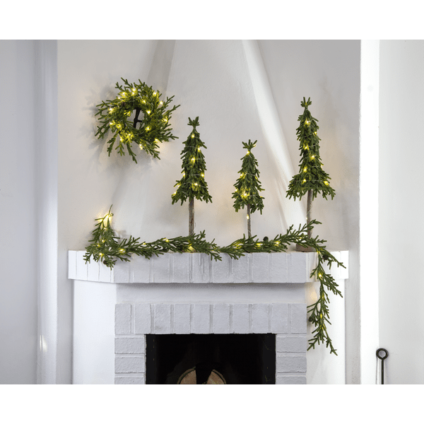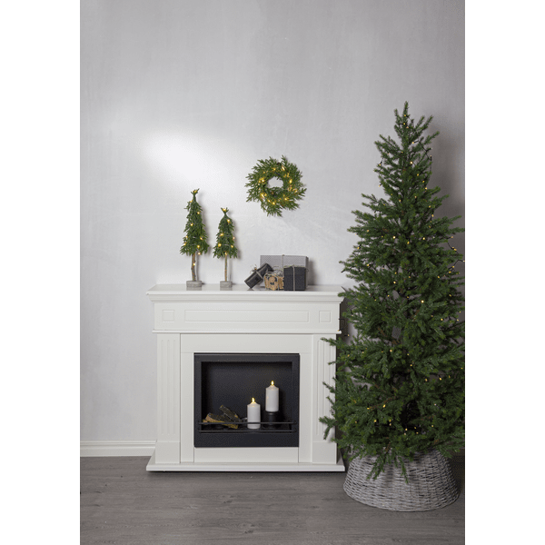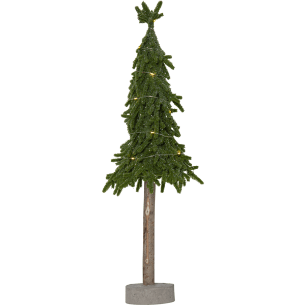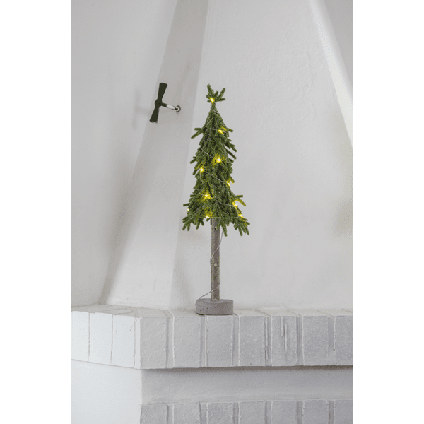Dekorativer, kleiner Tisch-Tannenbaum aus PE-Material mit etwas Glitzer und einem stabilen Zementsockel. Der Baum wird von 15 kleinen, warmweißen LEDs beleuchtet. Platzieren Sie ihn auf dem Beistelltisch, unter dem Weihnachtsbaum oder als Dekoration auf dem Esstisch. Er wird mit einem 30 cm langen Kabel zum Batteriefach geliefert. Der Baum benötigt 2 AA-Batterien (nicht im Lieferumfang enthalten). Leuchtdauer ca.: 200 Stunden.