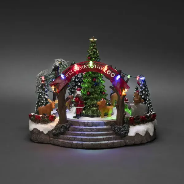 Willkommen im verspieltesten Winterwunderland der Weihnachtszeit – Zoo im Weihnachtsgewand! Diese mechanische Weihnachtsdekoration bietet eine farbenfrohe Szene mit 19 warmweißen LED-Lichtern, Musik, Tieren und dem Weihnachtsmann rund um einen funkelnden Weihnachtsbaum. Eine bezaubernde Dekoration, die Freude und Fantasie gleichermaßen verbreitet. Stromversorgung über 3 AA-Batterien (1,5 V – nicht im Lieferumfang enthalten). Transformator mit 1,8 m langem schwarzem Kabel und Stecker im Lieferumfang enthalten. Integrierte LED-Beleuchtung.