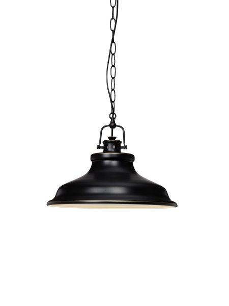 Die Pendelleuchte New Haven aus Metall mit schwarzem Antik-Finish ist eine stilvolle Lampe mit Vintage-inspiriertem Design. Seine robuste Metallkonstruktion undMehr lesenDie Pendelleuchte New Haven aus Metall mit schwarzem Antik-Finish ist eine stilvolle Lampe mit Vintage-inspiriertem Design. Seine robuste Metallkonstruktion und die Kettenaufhängung verleihen ihm ein industrielles Flair und eignen sich perfekt, um in der Küche oder im Esszimmer eine trendige Atmosphäre zu schaffen. Der Schirm verfügt über eine weiße Innenseite für eine besonders gute Lichtreflexion, die für optimales und angenehmes Licht sorgt. Die Leuchte vereint Funktionalität mit Ästhetik und wird zum Blickfang im Raum. Lichtquelle nicht enthalten.