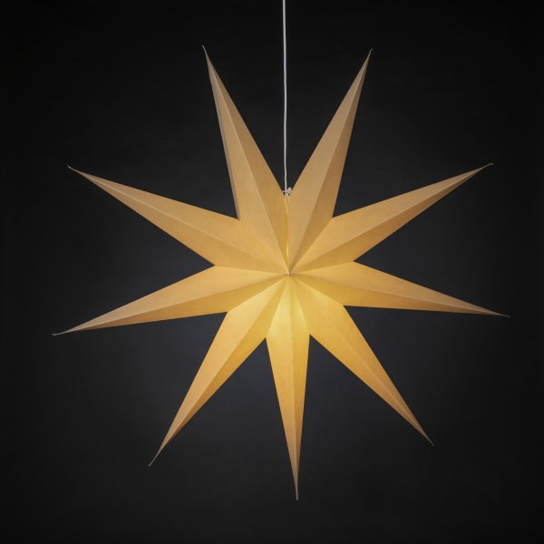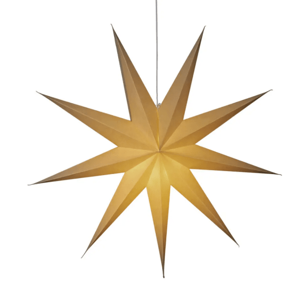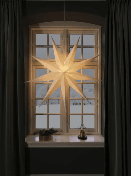 Erhellen Sie die Dunkelheit des Dezembers mit diesem klassischen Papierstern in einem Grau-/Beigeton. Mit seinem stilvollen Design und dem sanften Licht verbreitet es eine ruhige und heimelige Weihnachtsstimmung. Perfekt zum Aufhängen im Fenster oder an einer schönen Wand – eine zeitlose Dekoration, die jedem Raum schlichte Eleganz verleiht. Lieferung mit 5 m weißem Kabel, Netzschalter und Stecker. Lichtquelle nicht enthalten.