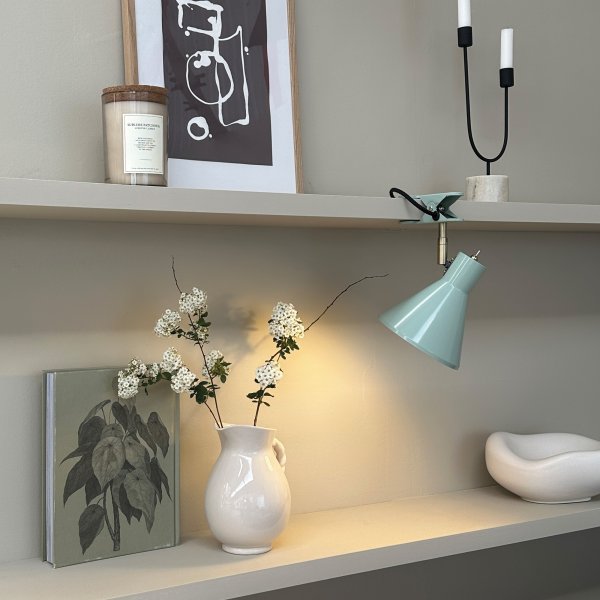 Die Klemmleuchte Sleep in Mintgrün ist eine vielseitige und praktische Beleuchtungslösung für das Zuhause. Die mintgrüne Farbe verleiht einen HauchMehr lesenDie Klemmleuchte Sleep in Mintgrün ist eine vielseitige und praktische Beleuchtungslösung für das Zuhause. Die mintgrüne Farbe verleiht einen Hauch von Retro, während die antiken Messingdetails ein elegantes Gefühl vermitteln. Dank verstellbarem Schirm perfekt als Leselampe oder Arbeitslampe geeignet. Der Netzschalter befindet sich auf dem Bildschirm und ist einfach zu bedienen. Es wird mit einem 1,6 Meter langen schwarzen Textilkabel geliefert, sodass es flexibel und je nach Bedarf leicht zu platzieren ist. Lichtquelle nicht enthalten.