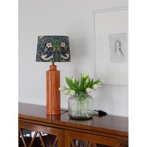 Der Solo-Lampenfuß in Hochglanz-Orange kombiniert mit einem zylinderförmigen, gemusterten Lampenschirm sorgt für einen eleganten und modernen Ausdruck. Das stilvolle DesignMehr lesenDer Solo-Lampenfuß in Hochglanz-Orange kombiniert mit einem zylinderförmigen, gemusterten Lampenschirm sorgt für einen eleganten und modernen Ausdruck. Das stilvolle Design macht die Lampe zu einem dekorativen Element, das sowohl im Wohnzimmer als auch im Schlafzimmer oder Flur gut passt. Lieferung mit 1,5 m Kabel, Netzschalter und Stecker. Leuchtmittel nicht enthalten.