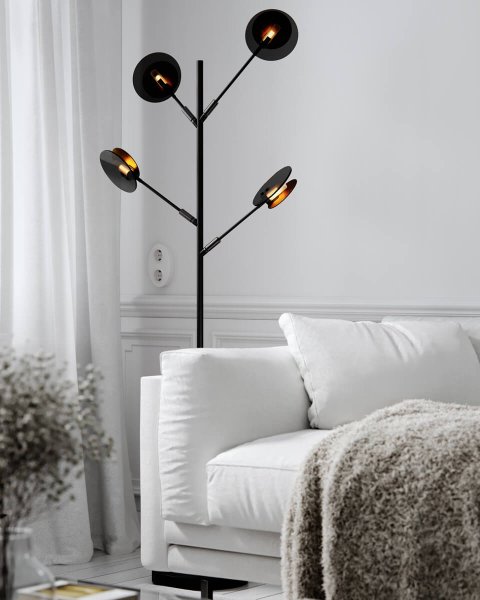 Wenn Monotonie keine Option ist. Mit der Stehleuchte Turno in klassischem Schwarzmetall haben Sie die Möglichkeit, die Lichtquellen nach Ihren Wünschen und Ihrem Geschmack einzustellen. Da die Stehleuchte Turno keine Rückseite hat, können Sie wählen, ob die in einer Röhre aus Milchglas untergebrachten Lichtquellen im Mittelpunkt stehen oder ob Sie sie lieber versteckt und auf der Rückseite haben möchten. so angeordnet, dass es seitlich hinter der goldfarbenen Metallscheibe abstrahlt. Aufgrund der unterschiedlichen Designs der Stehleuchte erfüllt Turno in den meisten Räumen Ihres Zuhauses eine Funktion. Haben Sie vielleicht Ihre neue Flurlampe, Wohnzimmerlampe oder Schlafzimmerlampe gefunden? Die Stehleuchte Turno eignet sich zur Präsentation, kann aber auch zu Hause verwendet werden. Aufgrund seiner schlanken Bauweise eignet er sich perfekt für die Platzierung in etwas engeren Räumen. Wird mit einem 2,5 m langen Kabel mit Netzschalter und integriertem Dimmer geliefert. Lichtquellen nicht enthalten.